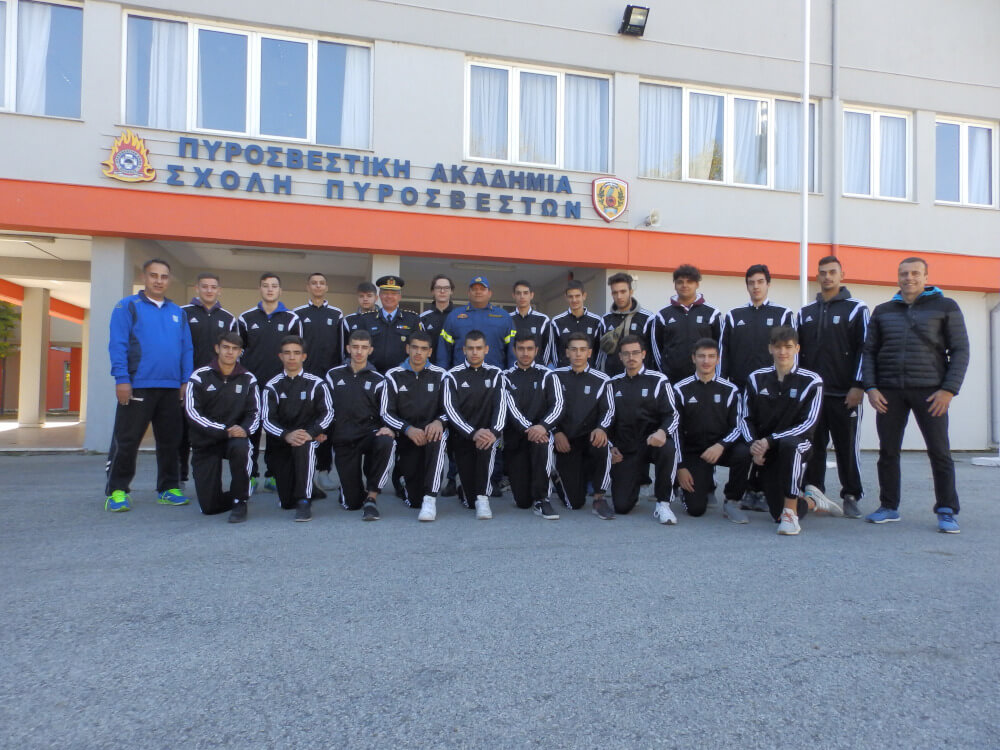 Μάλιστα, ο διοικητής της Σχολής, Ανδρέας Παπαζαχαρίας, μίλησε στους αθλητές της Εθνικής ομάδας για το έργο των πυροσβεστών και τους προέτρεψε να προσπαθήσουν ώστε στο μέλλον να γίνουν φοιτητές της πυροσβεστικής ακαδημίας. Η εισαγωγή στη σχολή γίνεται μέσω πανελλαδικών εξετάσεων και έχει πολύ υψηλές βάσεις.