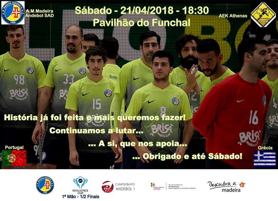 Σε ρυθμούς ΑΕΚ κινείται και η Μαδέιρα. Η πορτογαλική ομάδα φιλοξενεί την Ένωση το Σάββατο (21/4, 20:30) στον πρώτο αγώνα για την ημιτελική φάση του Τσάλεντζ Καπ και στέλνει το δικό της μήνυμα στους φίλους της ομάδας για τον μεγάλο αγώνα που θα γίνει στην πρωτεύουσα Φούντσαλ της νήσου Μαδέιρα.