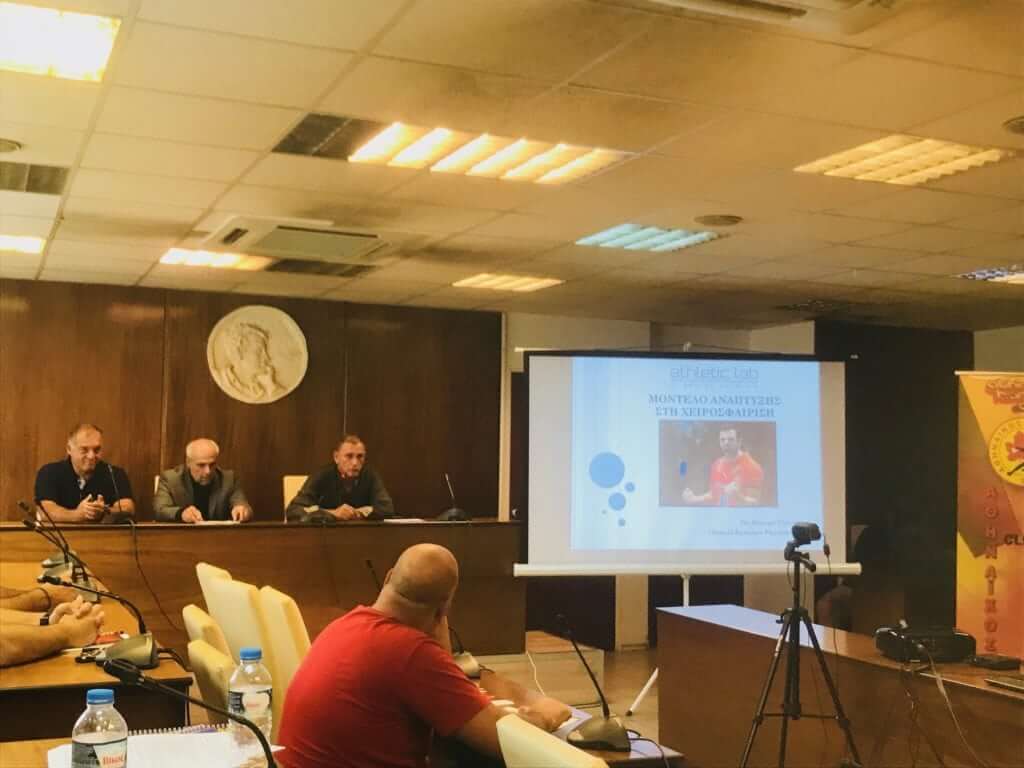 προγράμματα προπόνησης στις ηλικίες 12 – 18 χρονών, ενώ ακολούθησαν οι ομιλίας για την επίδραση της προπόνηση στις ηλικιακές κατηγορίες 12 – 18 χρ. από Ψυχολογική και Παιδαγωγική πλευρά (Dr. Ζαρώτης Γιάννης Αθλητικός Ψυχολόγος MSc – PhD.) και ο ρυθμός ανάπτυξης του παιχνιδιού στην διαμόρφωση του Αγωνιστικού προφίλ σε άμυνα & επίθεση στις ηλικίες 12 – 18 χρ.» (παρουσίαση από ΕΑΠ/ΟΧΕ και συζήτηση).