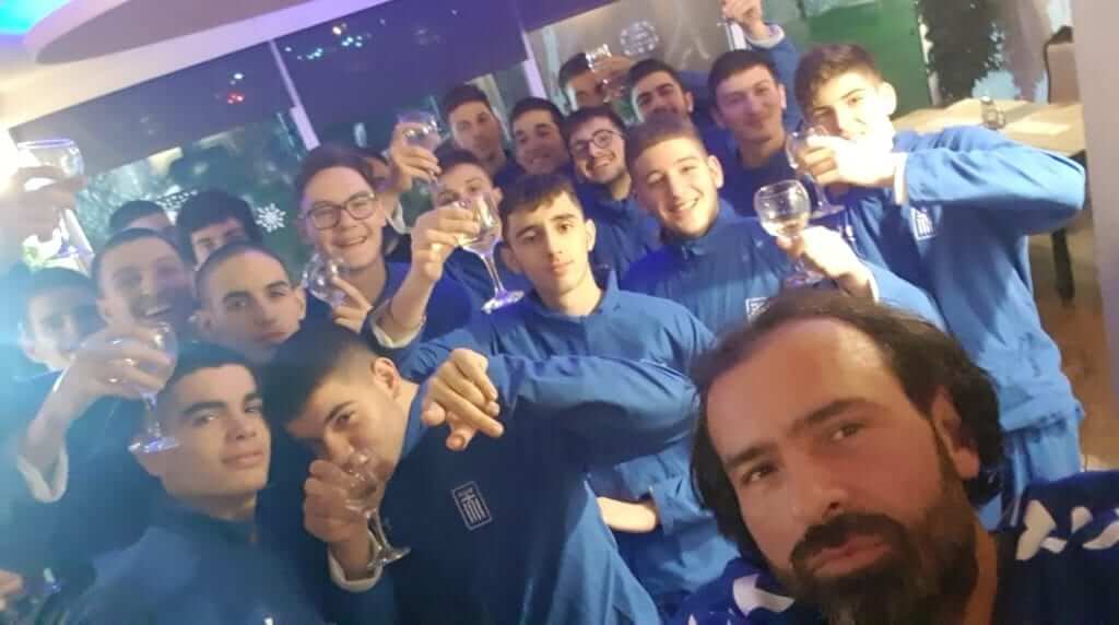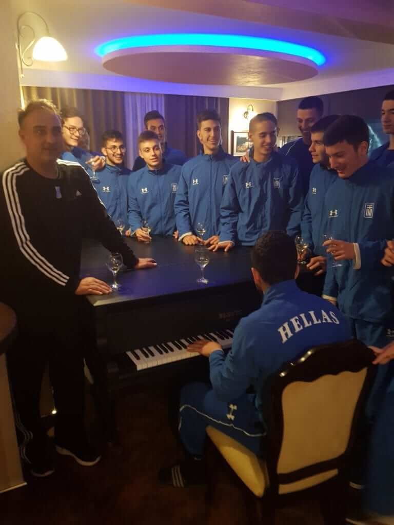 Οι διεθνείς έκαναν Χριστούγεννα στο γήπεδο και το διασκέδασαν φτιάχνοντας μία σχετική ευχετήρια κάρτα. Ιδιαίτερη ήταν και η παραμονή των Χριστουγέννων στο ξενοδοχείο, όπου αθλητές και τεχνικό επιτελείο αντάλλαξαν δώρα και τραγούδησαν τα κάλαντα, με τον τερματοφύλακα Ντίνο Στανκίδη να παίζει χριστουγεννιάτικους σκοπούς στο πιάνο. To τεχνικό επιτελείο μετέφερε τις ευχές του προέδρου της ΟΧΕ, Κώστα Γκαντή και του συντονιστή των Εθνικών ομάδων, Νίκου Μάντζου για υγεία, πρόοδο και αγωνιστικές επιτυχίες.