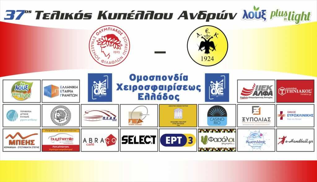 Η Ομοσπονδία Χειροσφαιρίσεως Ελλάδος ανακοινώνει ότι αύριο Παρασκευή 15 Μαρτίου 2019 και ώρα 13:00 στην αίθουσα Τύπου «Αλέκα Σιούλη» του Παμπελοποννησιακού Σταδίου θα πραγματοποιηθεί η επίσημη συνέντευξη Τύπου του 37ου τελικού του Κυπέλλου Ανδρών «Λουξ Plus ‘n Light» Ολυμπιακός ΣΦΠ/ Όμιλος Ξυνή- ΑΕΚ.