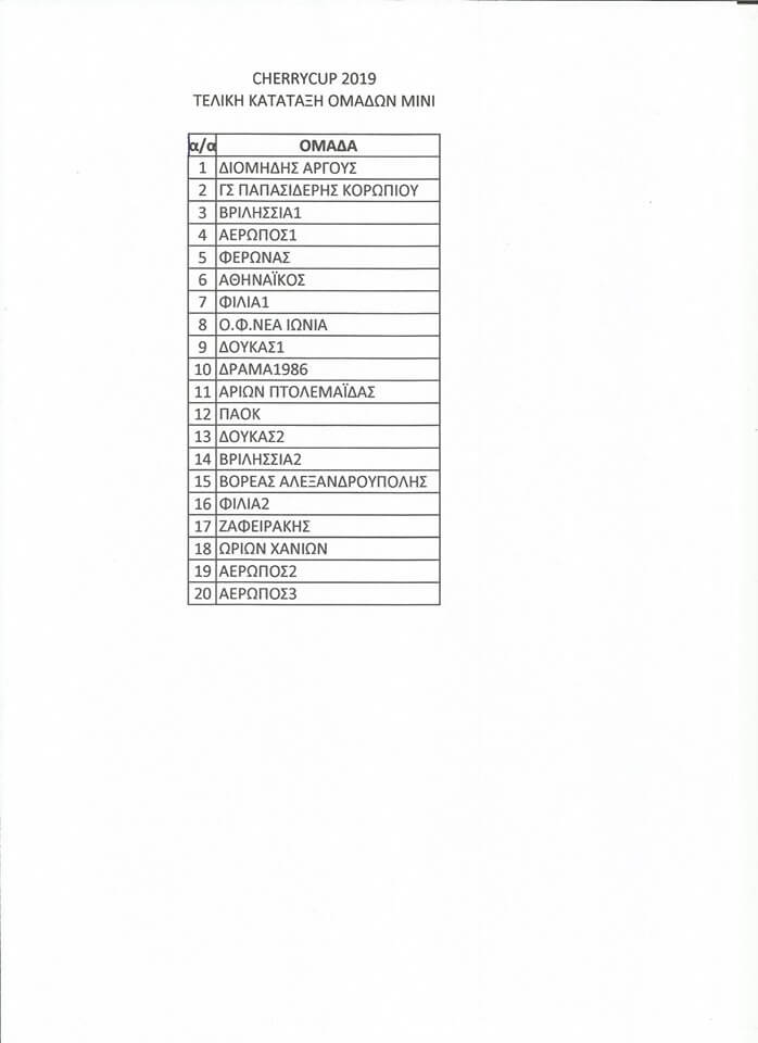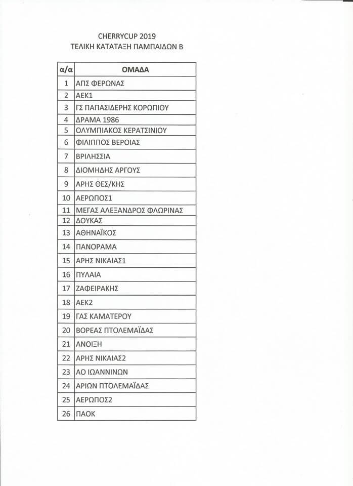 Τον τίτλο στους παμπαίδες Β’ κατέκτησε ο Φέρωνας Βέροιας του Τάσου Χατζηπαρασίδη, ενώ στην κατηγορία μίνι πρώτος στην κατάταξη αναδείχθηκε ο Διομήδης Άργους.