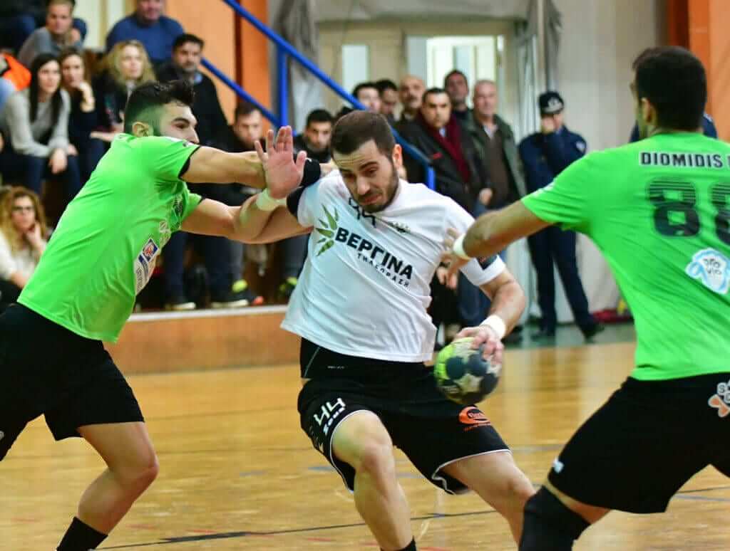 Στο πρώτο μέρος μετά από ένα ισορροπημένο ξεκίνημα, ο ΠΑΟΚ με ένα σερί 0-3 ξέφυγε με 3-6 στο 12:00, αλλά οι γηπεδούχοι ανέβασαν ρυθμούς και με ένα σερί 4-0 πήραν “κεφάλι’ στο σκορ με 7-6. Η αντεπίθεση του Διομήδη ξεσήκωσε την κερκίδα και η ατμόσφαιρα έγινε ακόμη πιο καυτή, όταν οι γηπεδούχοι προηγήθηκαν με 11-8, έχοντας πρωταγωνιστή επιθετικά τον 19χρονο πίβοτ Βασίλη Μάνθο και τον ΠΑΟΚ να μετρά έως εκείνο το σημείο 1/3 πέναλτι. Ωστόσο, οι φιλοξενούμενοι είχαν την τελευταία λέξη στο πρώτο μέρος, καθώς έτρεξαν ένα σερί 0-4 και μπήκαν στα αποδυτήρια με διαφορά ενός τέρματος (11-12).
