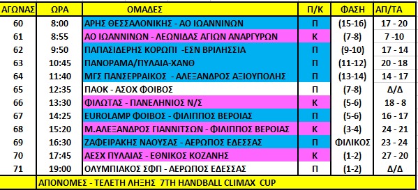 Αναλυτικά και τα αποτελέσματα της τελευταίας μέρας: