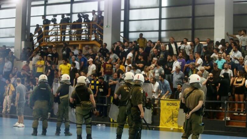 Το παιχνίδι θα διακοπεί λόγω επεισοδίων για αρκετά λεπτά και μετά από την επέμβαση των ΜΑΤ μέσα στον αγωνιστικό χώρο θα συνεχιστεί και θα τελειώσει…