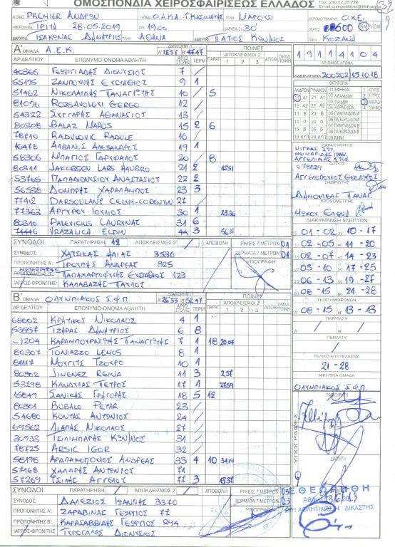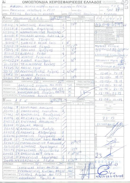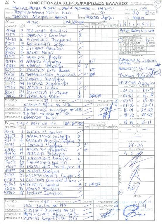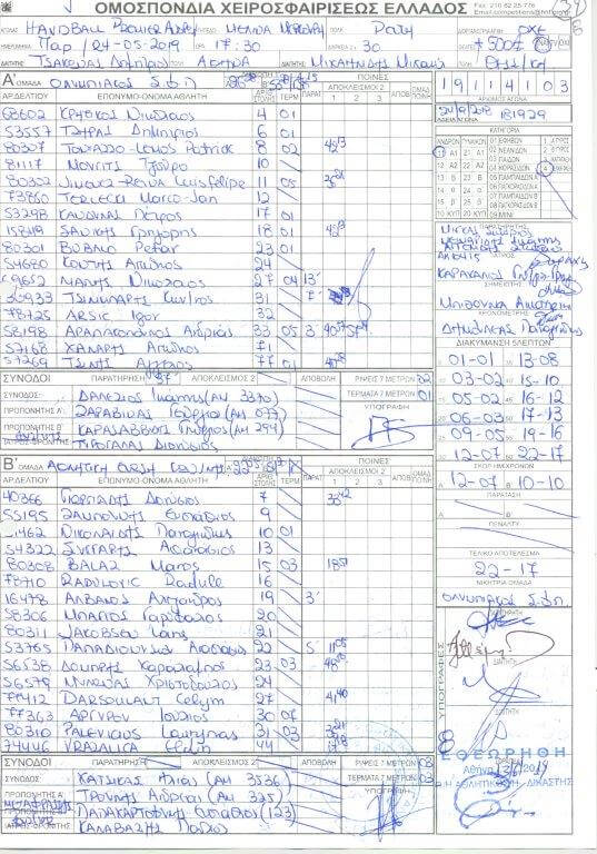 Πρόκειται για φύλλα αγώνα, στα οποία υπάρχουν παρατηρήσεις διαιτητών και παρατηρητών, όχι μόνο των τελικών, αλλά και άλλων αγώνων της κανονικής διάρκειας των πρωταθλημάτων της Handball Premier και της Α1 Γυναικών.