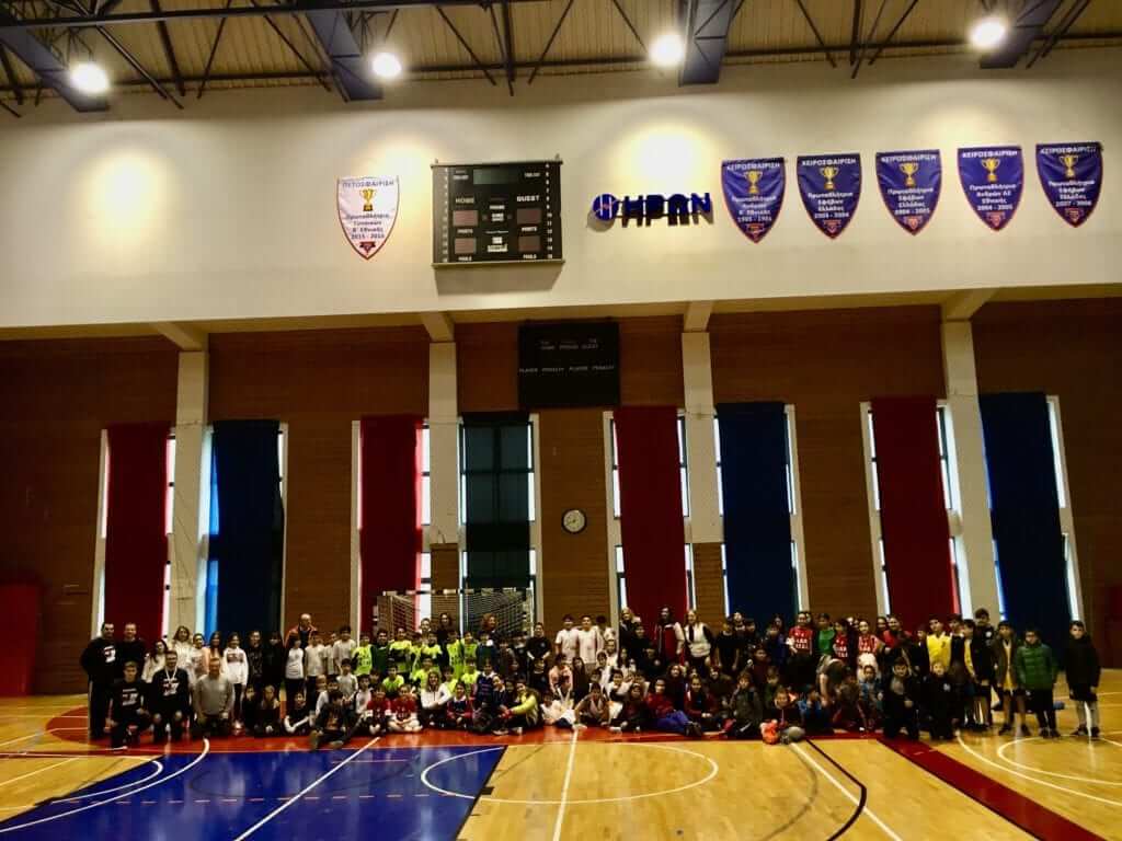 Στο Αθλητικό Κέντρο Χ.Α.Ν.Θ., γήπεδο ΗΡΩΝ – Μίμης ΤΣΙΚΙΝΑΣ, τη Δευτέρα 03/02, την Τετάρτη 05/02 και την Παρασκευή 07/02/2020 οι μαθητές των Δημοτικών Σχολείων που συμμετείχαν στους αγώνες είχαν την ευκαιρία να γνωρίσουν τη χειροσφαίριση. Εφάρμοσαν πρακτικά τις δεξιότητες, την τεχνική και την τακτική, που απέκτησαν κατά τη διδασκαλία του μαθήματος Φυσικής Αγωγής και αφομοίωσαν βιωματικά τους κανονισμούς του αθλήματος.
