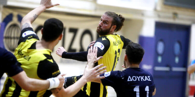 Στην πρώτη θέση της βαθμολογίας θα παραμείνει και μετά το πέρας της 18ης αγωνιστικής της Handball Premier η ΑΕΚ, η οποία κέρδισε κατά κράτος με 39-20 τον Δούκα στο Δαϊς.