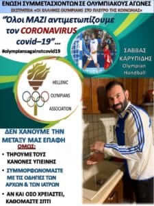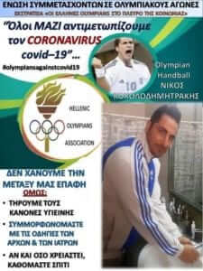 Οι Olympians του χάντμπολ, δηλαδή όλοι οι αθλητές που έχουν λάβει μέρος σε Ολυμπιακούς Αγώνες, κάνουν τη δική τους προσπάθεια ώστε να ευαισθητοποιήσουν τον κόσμο μέσω των social media και να τον ενημερώσουν, προτρέποντας τον να μείνει στο σπίτι!