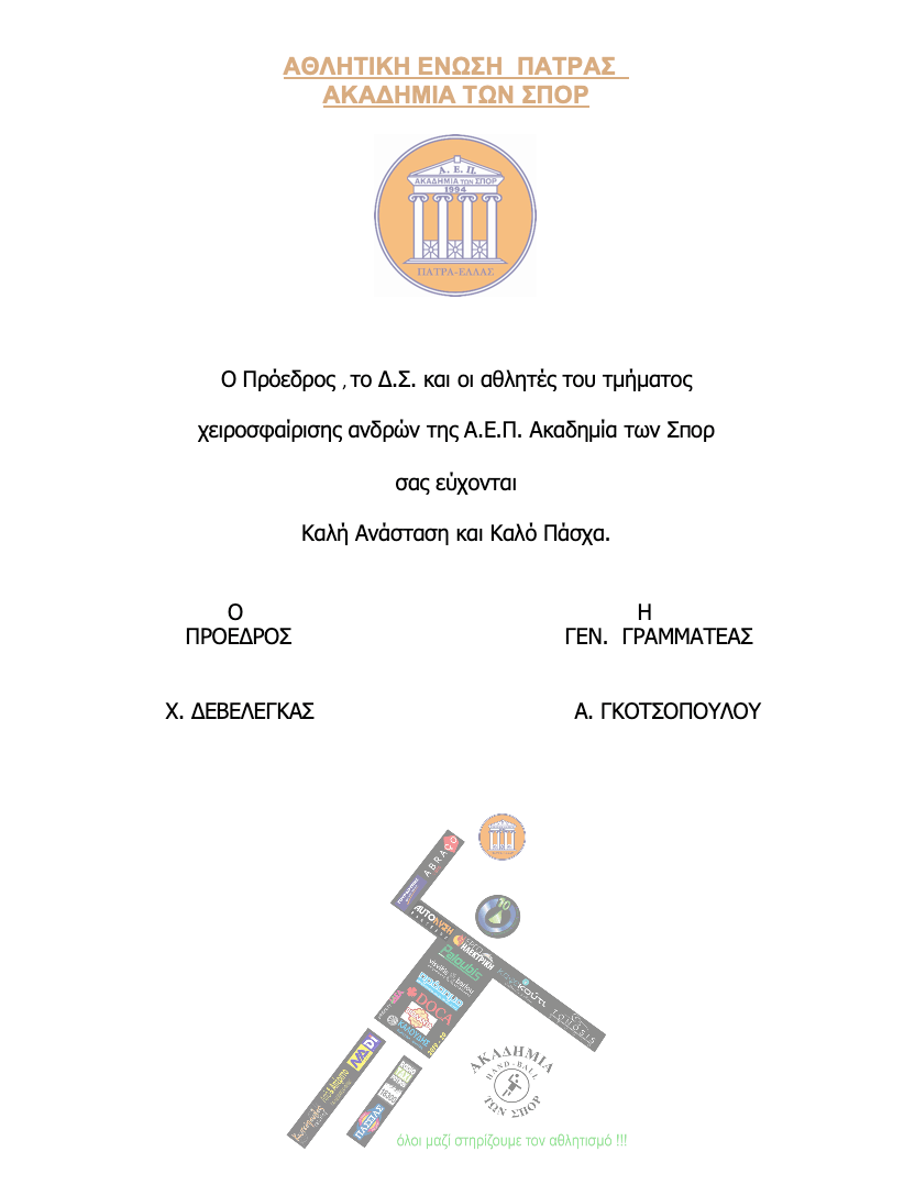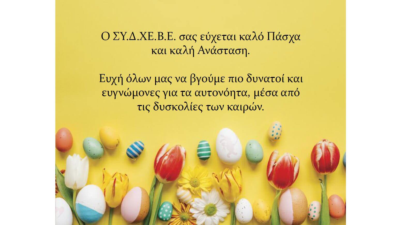 Ο Πρόεδρος και το Δ.Σ. του ΣΥ.Π.Χ.Ε. εύχονται ολόψυχα στα μέλη του και σε όλους τους συντελεστές του αθλήματος Καλή Ανάσταση και καλό Πάσχα με υγεία, χαμόγελα και δημιουργικότητα.