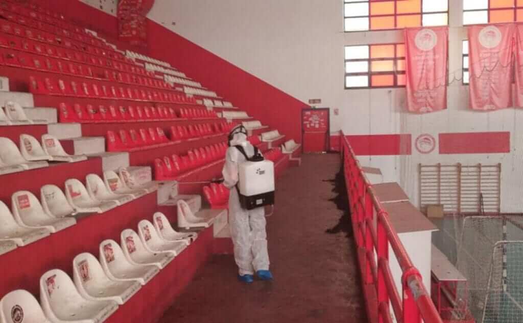 Απολύμανση σε όλους τους εξωτερικούς και εσωτερικούς χώρους (εξέδρες, γυμναστήριο, ιατρείο, αποδυτήρια, γραφεία και αγωνιστικό χώρο) πραγματοποιήθηκε εχθές στο Κλειστό Γυμναστήριο Ρέντη “Μελίνα Μερκούρη” ενόψει της επανεκκίνησης των προπονήσεων σε κλειστούς αθλητικούς χώρους.