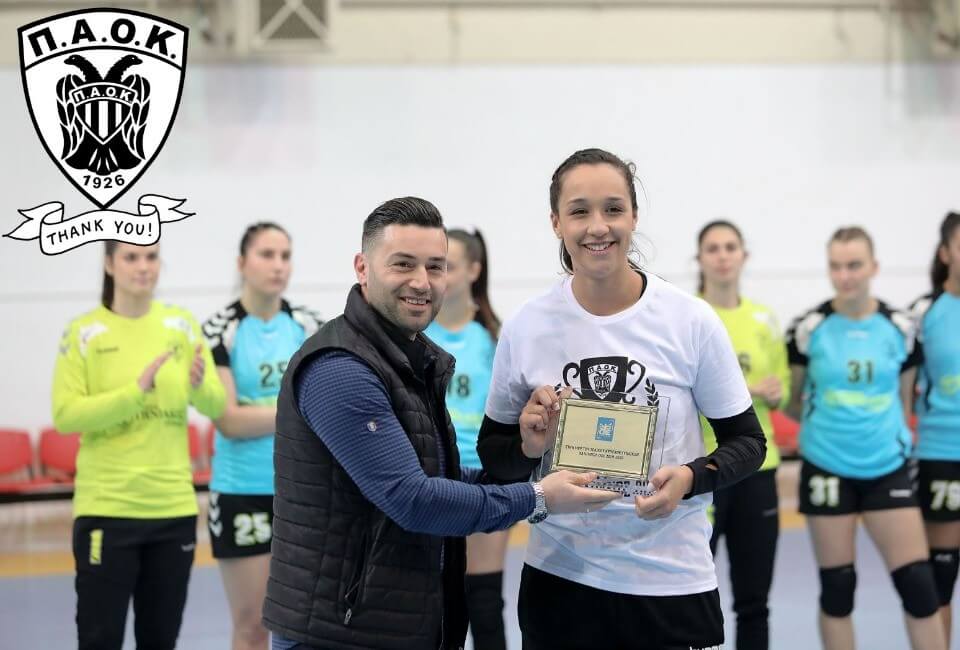 Το τμήμα χάντμπολ γυναικών του Συλλόγου μας, ΠΑΟΚ Mateco, ευχαριστεί την αθλήτρια, Bruna De Oliveira Camboim, για την διετή προσφορά της.