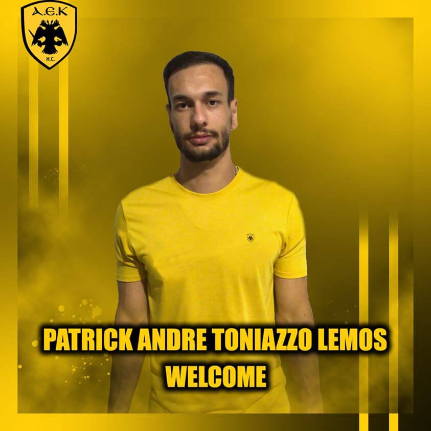 Η ΑΕΚ βρίσκεται στην ευχάριστη θέση να ανακοινώσει την έναρξη της συνεργασίας της με τον Patrick Andre Toniazzo Lemos. Ο 24χρονος (23/05/1996) Βραζιλιάνος, ύψους 1,90 μ., αγωνίζεται στις θέσεις του πλέι μέικερ και του αριστερού ίντερ, και υπέγραψε διετές συμβόλαιο, ήτοι έως το καλοκαίρι του 2022, με την ομάδα χάντμπολ του Συλλόγου.