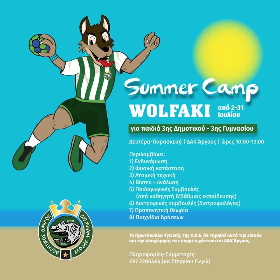 Από σήμερα και για όλο τον Ιούλιο το Wolfaki περιμένει τα παιδιά στο καλοκαιρινό camp που διοργανώνει ο Διομήδης και οι Ακαδημίες του. Οι προπονητές των Ακαδημιών μας Αντώνης Δάσκαλος και Γιάννης Χαντέλης έχουν εκπονήσει ένα πρόγραμμα που συνδυάζει άσκηση και θεωρία, ενώ ταυτόχρονα στη διάθεση των παιδιών θα βρίσκονται εξειδικευμένοι επιστήμονες για να τους παρέχουν ιδιαίτερα χρήσιμες Παιδαγωγικές και Διατροφικές συμβουλές.