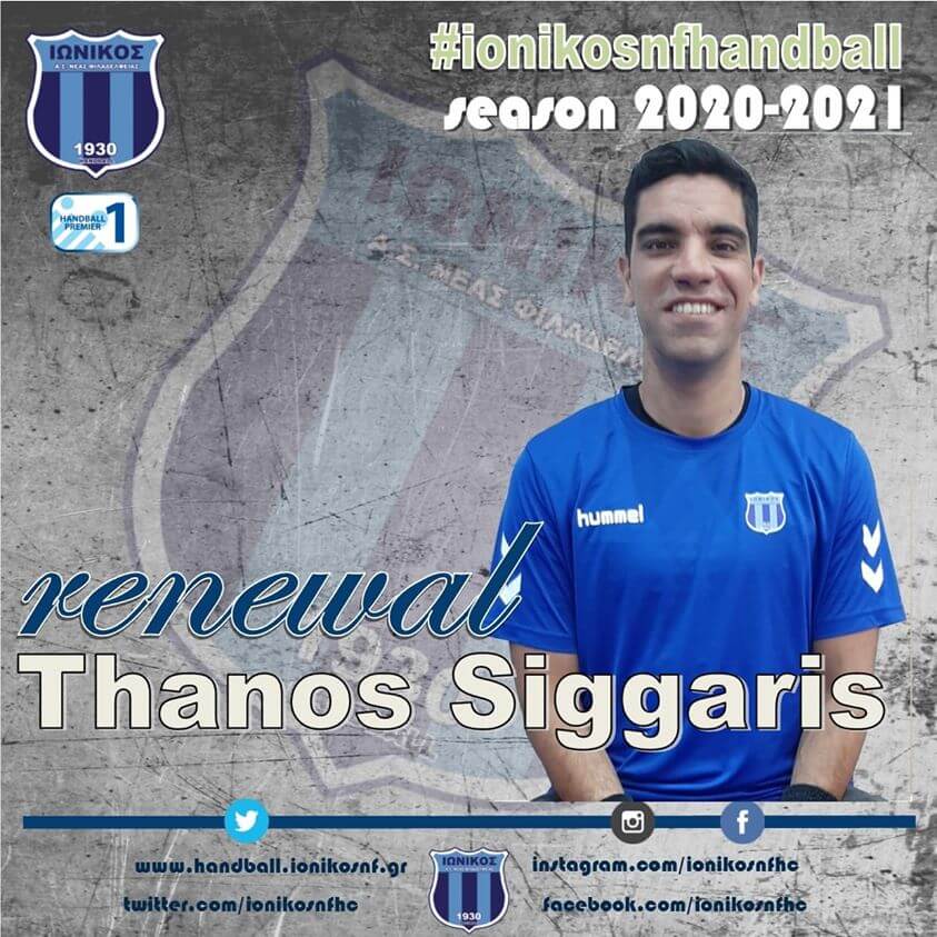 Το τμήμα Handball του Ιωνικού Α.Σ. Νέας Φιλαδέλφειας είναι στην ευχάριστη θέση να ανακοινώσει την ανανέωση συνεργασίας με τον Θάνο Συγγάρη για την προσεχή σεζόν 2020-2021 . Ο Θάνος είχε καθοριστική συμβολή στην άνετη παραμονή της ομάδας μας στην handball premier και έτσι θα συνεχίσει και φέτος να είναι ο ‘’(τερματο)-φύλακας άγγελος’’ μας . Στα αξιοσημείωτα είναι το γεγονός ότι σημείωσε 3 γκολ την χρονιά που μας πέρασε ενώ ένα από αυτά ανήκει στα highlights αφού μας χάρισε ένα σπουδαίο διπλό στην έδρα του Δούκα το τελευταίο δευτερόλεπτο ! Του ευχόμαστε πάντα υγιής και πολλές επιτυχίες με τον Ιωνικό μας ! ! !