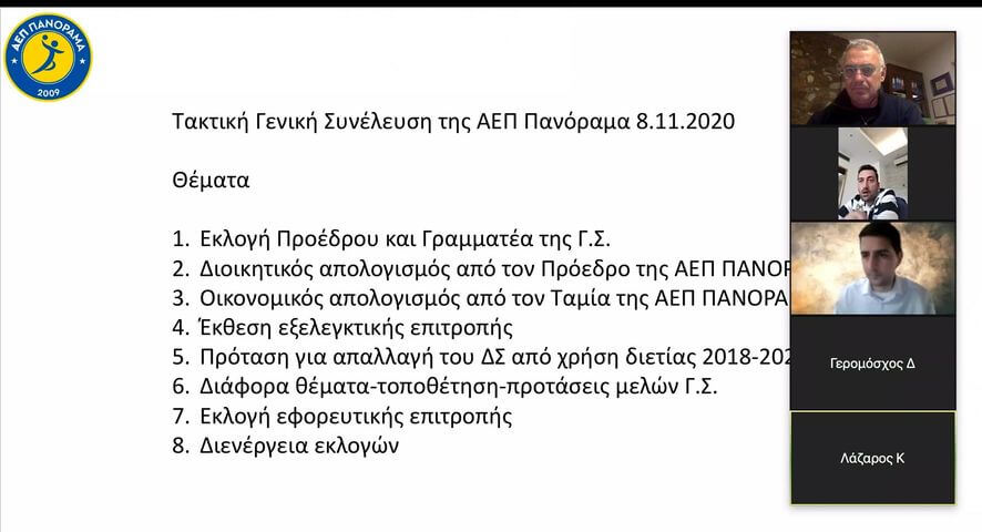 Α1 Γυναικών, Τελευταία ΝέαΔιαδικτυακά οι αρχαιρεσίες της ΑΕΠ Πανόραμα 08 Νοέ Για πρώτη φορά στα χρονιά του συλλόγου, σήμερα (8/11), διεξήχθησαν διαδικτυακά οι αρχαιρεσίες της ΑΕΠ ΠΑΝΟΡΑΜΑ. Χαλκίδης: «Να προσέχετε όλοι τους εαυτούς σας και τις οικογένειές σας» ΠΣΑΧ: «Διεκδικούμε την επιστροφή όχι μόνο στους αγώνες αλλά επιτακτικότερα στις προπονήσεις»