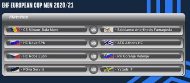 Αν η ΑΕΚ προκριθεί θα αντιμετωπίσει το νικητή του ζευγαριού HC Ρόμπε Ζούμπρι-Γκορένιε Βελένιε και η Ανόρθωση εκείνον του Πόλβα Σερβίτι-Ιστάντς IF.