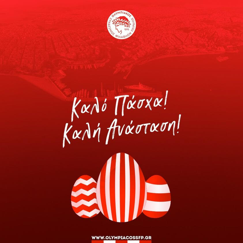 Ο ΠΑΟΚ, ενόψει της μεγάλης γιορτής της Αναστάσεως του Κυρίου, εύχεται στα μέλη του, στον μεγάλο Λαό του Συλλόγου, στους αθλητές και στις αθλήτριες, στους προπονητές και προπονήτριες, καθώς και στους χορηγούς του Σωματείου, χρόνια πολλά και καλή Ανάσταση!