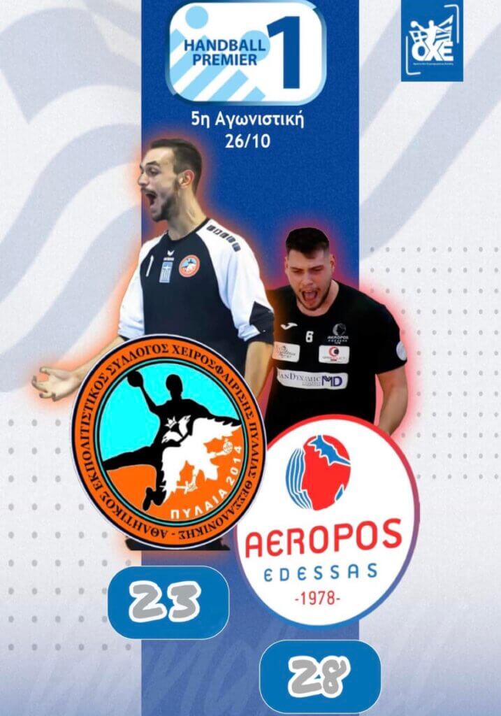 Νίκη με μεγάλη βαθμολογική σημασία πανηγύρισε ο Αερωπός, που επικράτησε της Πυλαίας στη Θεσσαλονίκη με 23-28 για την 5η αγωνιστική της Handball Premier.