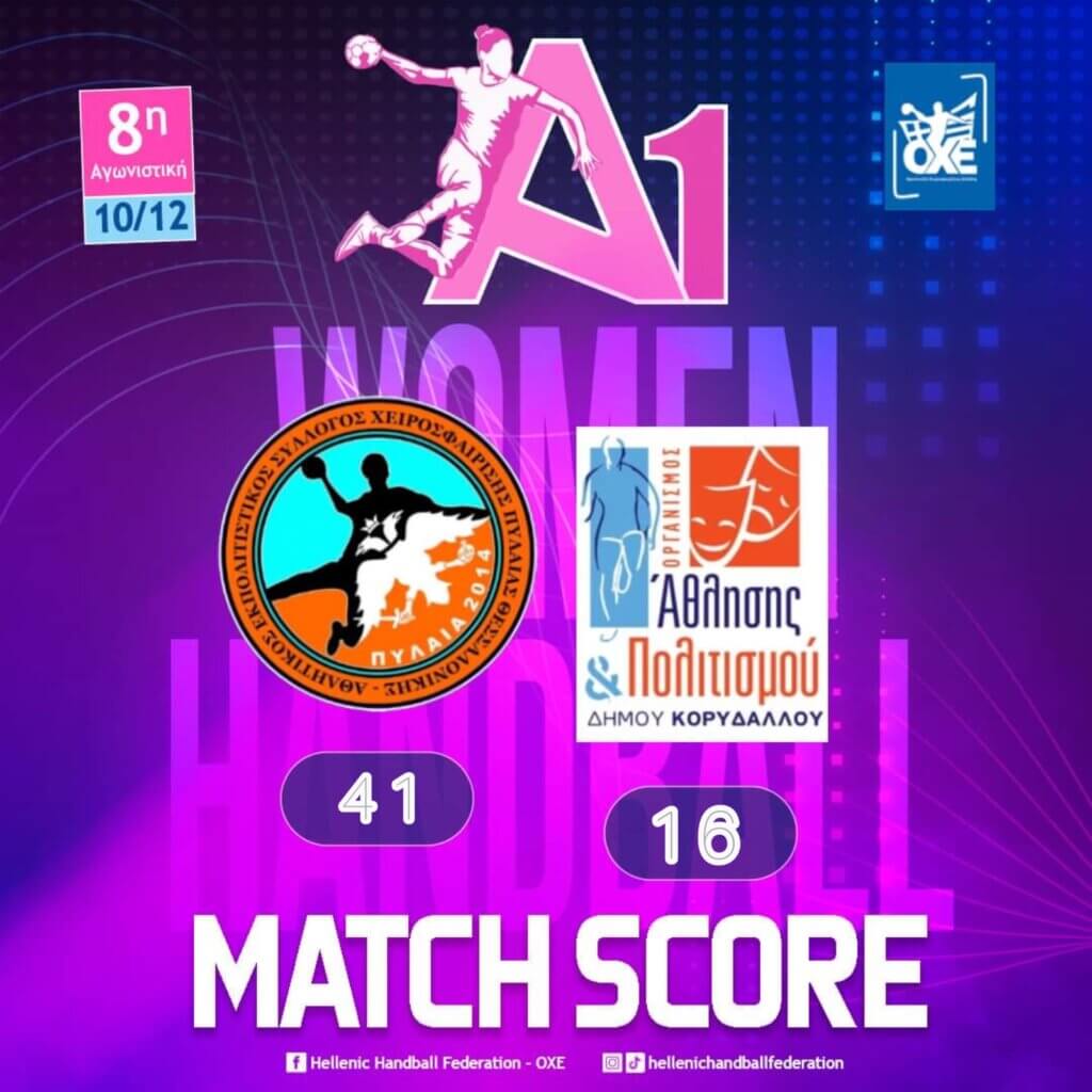 Ο ΑΕΣΧ Πυλαίας επικράτησε του Κορυδαλλού με 41-16 για την 8η αγωνιστική της Α1 γυναικών και επέστρεψε στα θετικά αποτελέσματα.