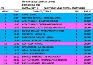 Ξεκινά σήμερα (2/1) το 9ο Climax cup στις κατηγορίες παίδων και κορασίδων. Οι αγώνες θα διαρκέσουν έως την Πέμπτη (5/1) και θα διεξαχθούν στο κλειστό γήπεδο Συκεών.