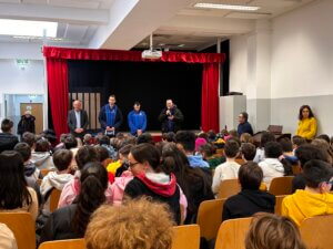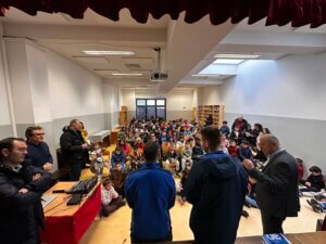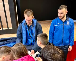 Το 2ο ελληνικό γυμνάσιο και το 5ο ελληνικό Δημοτικό σχολείο «Σωκράτης) του Μονάχου επισκέφτηκε σήμερα (15/1) το πρωί αντιπροσωπεία της Εθνικής Ανδρών με επικεφαλής τον Πρόεδρο της ΟΧΕ Κώστα Γκαντή και τους διεθνείς αθλητές Γιώργο Παπαβασίλη και Παναγιώτη Παπαντωνόπουλο, οι οποίοι έτυχαν θερμότατης υποδοχής από 260 και πλέον μαθητές που φώναζαν «Ελλάς- Ελλάς»