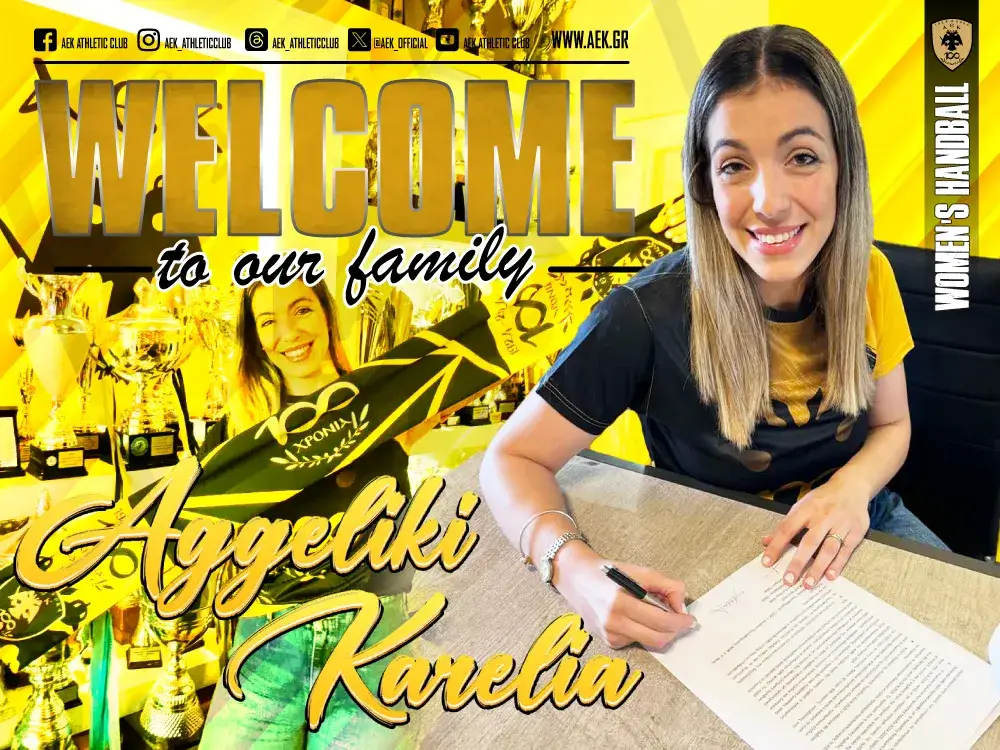Η ΑΕΚ ανακοίνωσε την έναρξη της συνεργασίας της με την Αγγελική Καρέλα. Η γεννηθείσα στις 17 Σεπτεμβρίου του 1991 διεθνής αθλήτρια, θα ενισχύσει το τμήμα του Χάντμπολ Γυναικών της ΑΕΚ.