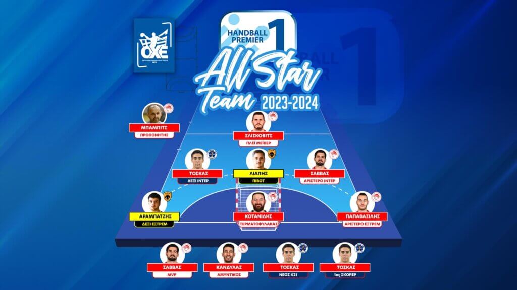 Ολοκληρώθηκε η ψηφοφορία που διοργάνωσε το γραφείο Τύπου της ΟΧΕ για την ανάδειξη της All Star Team της Handball Premier περιόδου 2023-2024, στην οποία έλαβαν μέρος οι 12 προπονητές και οι 12 αρχηγοί των σωματείων.