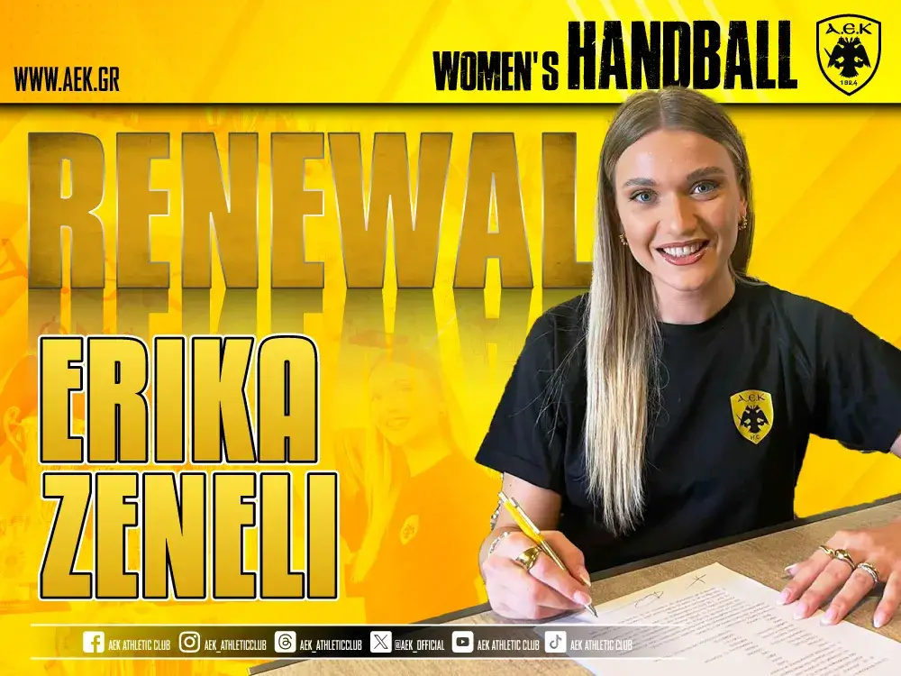 Αναλυτικά: “Η ΑΕΚ βρίσκεται στην ευχάριστη θέση να ανακοινώσει την ανανέωση της συνεργασίας της με την Έρικα Ζενέλι, ανήμερα μάλιστα των γενεθλίων της! Η 25χρονη (13/05/2000) διεθνής ίντερ υπέγραψε διετές συμβόλαιο, ήτοι μέχρι το 2027, και θα συνεχίσει να αποτελεί μέλος της γυναικείας ομάδας Χάντμπολ, της οποίας άλλωστε είναι και αρχηγός.