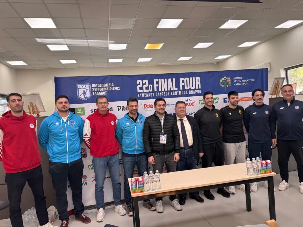 Η επίσημη συνέντευξη Τύπου του 22ου Final Four του Κυπέλλου Ανδρών πραγματοποιήθηκε στο Πάρκο Ανταποδοτικής Ανακύκλωσης του Δήμου Αγίων Αναργύρων Καματερού. Παρόντες ήταν εκπρόσωποι της Ομοσπονδίας, του Δήμου καθώς και των τεσσάρων φιναλίστ.