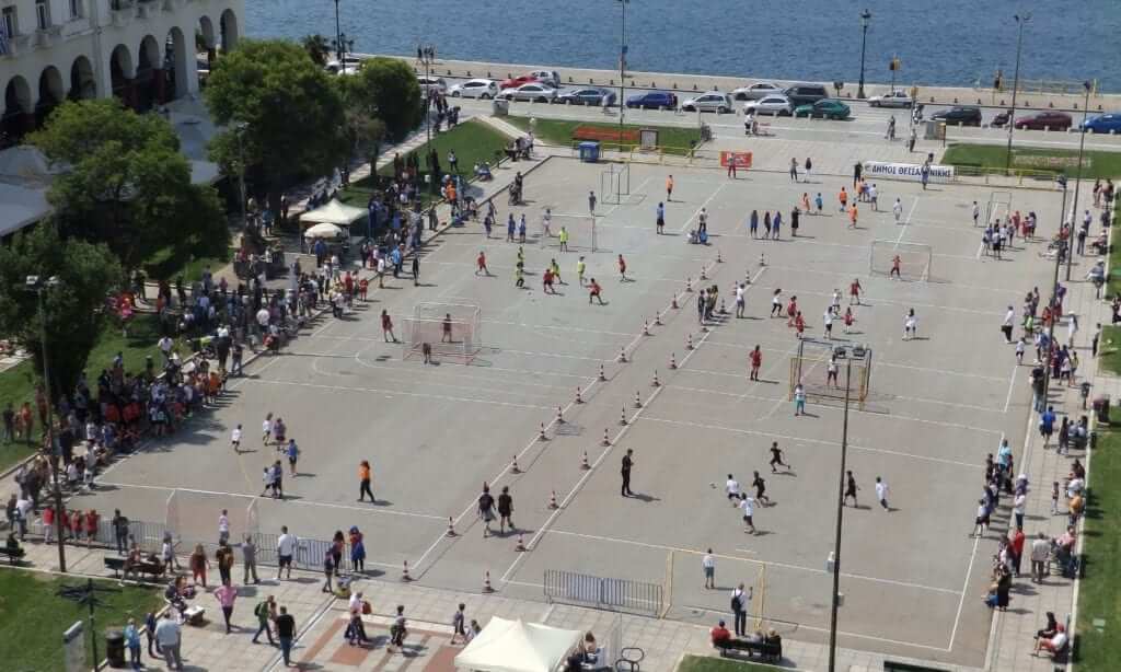Το χάντμπολ είχε την τιμητική του σήμερα το πρωί στο κεντρικότερο σημείο της Θεσσαλονίκης, στην πλατεία Αριστοτέλους με εκατοντάδες αγόρια και κορίτσια να παίζουν street handball στα πέντε ειδικά διαμορφωμένα γήπεδα.