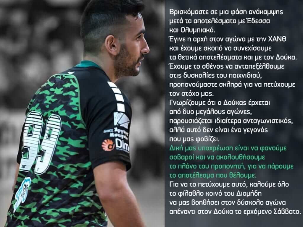 Δηλώσεις του Αντώνη Δάσκαλου για το ματς Διομήδης- Δούκας