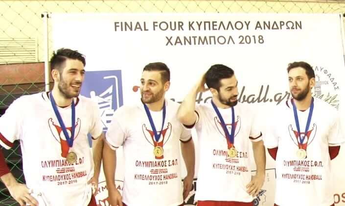 Η …αγία τετράδα του Ολυμπιακού (Παντελής Κωστακίδης, Δημήτρης Τζηράς, Τάσος Παπαδιονυσίου και Πέτρος Κανδύλας) παίρνουν στα χέρια τους το μικρόφωνο του e-handball.gr και αναλαμβάνουν δράση μετά την κατάκτηση του Κυπέλλου Ελλάδος, στον τελικό του φάιναλ φορ της Γλυφάδας.