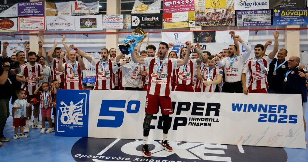 Ο Ολυμπιακός/Όμιλος Ξυνή νίκησε 24-23 την ΑΕΚ και κατέκτησε το 5ο Σούπερ Καπ που διεξήχθη στο ΚΓ Καματερού. Οι «ερυθρόλευκοι» πήραν τον πρώτο τίτλο της σεζόν, 12ο συνολικά στην ιστορία τους και 4ο συνεχόμενο Σούπερ Καπ. Ο Πορτογάλος τερματοφύλακας Ντιόγκο Βαλέριο έκανε εξαιρετικές επεμβάσεις μαζί με την τελευταία σε σουτ του Βλαστού σχεδόν με τη […]